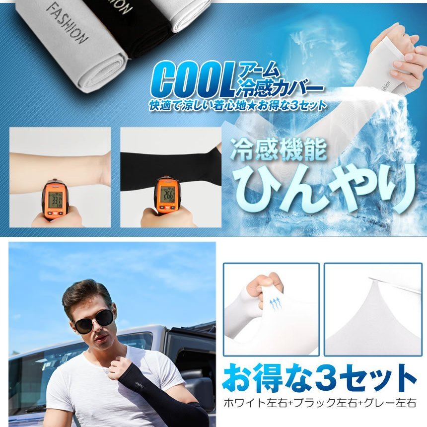 爆買 アームカバー 冷感 3色セット 2タイプ選択 左右 UVカット率99% 冷感 吸汗速乾 腕カバー 日焼け止めカバー 接触冷感 送料無料