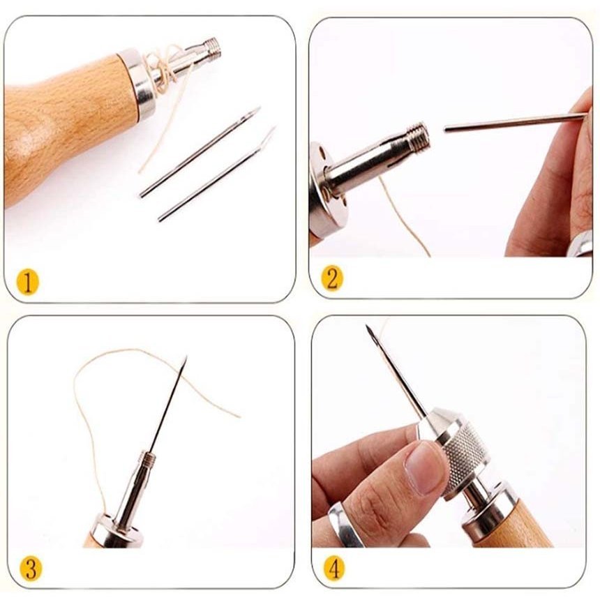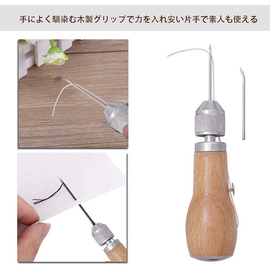 片手で縫える レザークラフト用 スピーディーステッチャー 手縫機 ハンドミシン 糸通し器 革縫い針セット 針2本入り 革用ミシン針 革工具 レザ