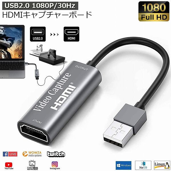 【その他の特徴】・Windows、Mac、AndroidのOSに対応。・VLC media player、OBS Studio、XSplitなどのライブ映像録画アプリケーションが使用できます。・電源不要、ドライバインストール不要、持ち運びに便利な小型設計。