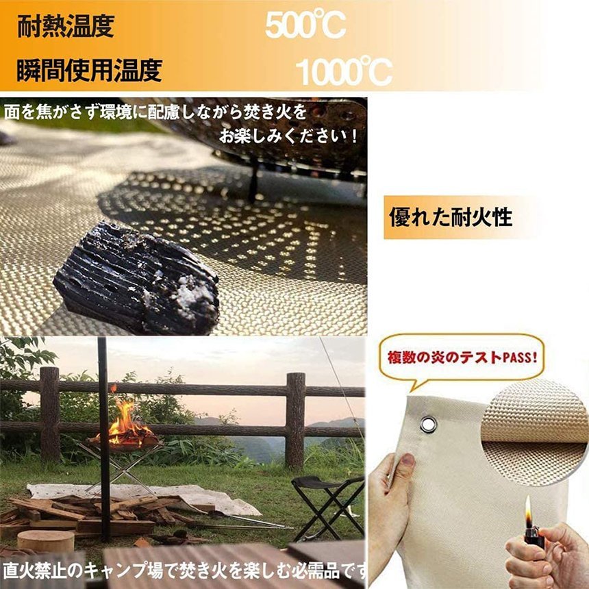 【ガラス繊維,耐火 耐熱性抜群】 焚き火シートはガラス繊維で作られ、耐熱性も500℃までと高いため,シーズン通して幅広く使えますよ。