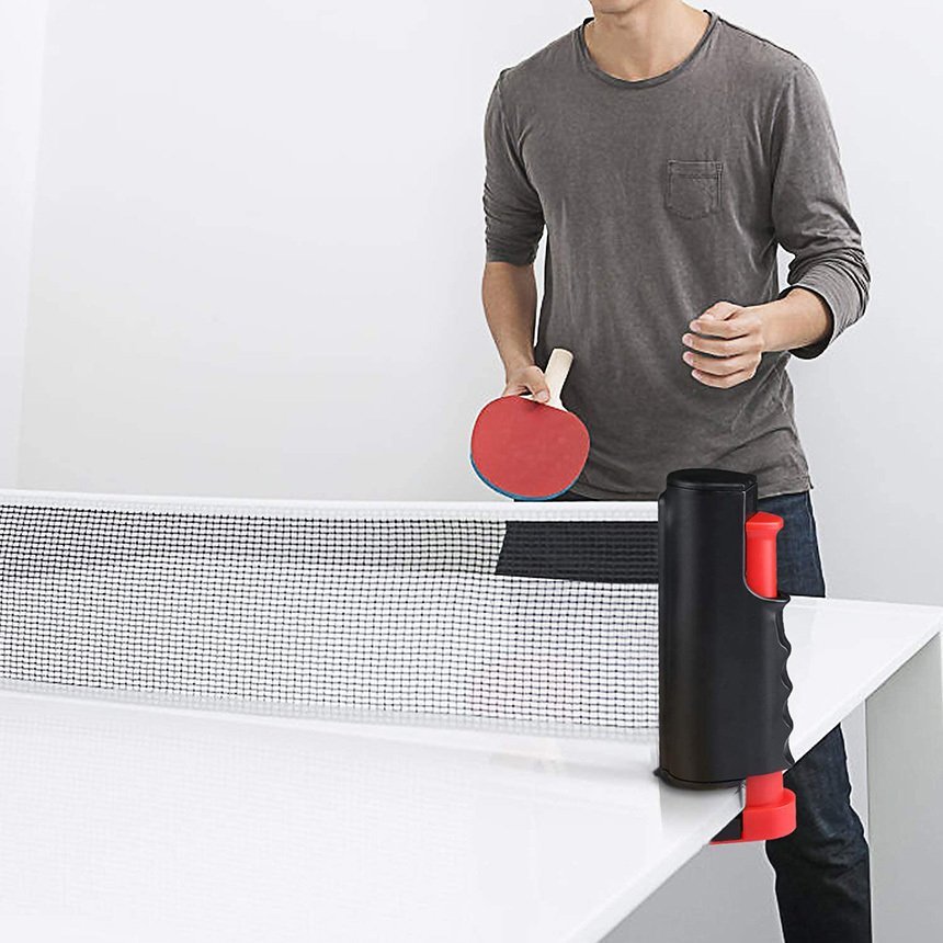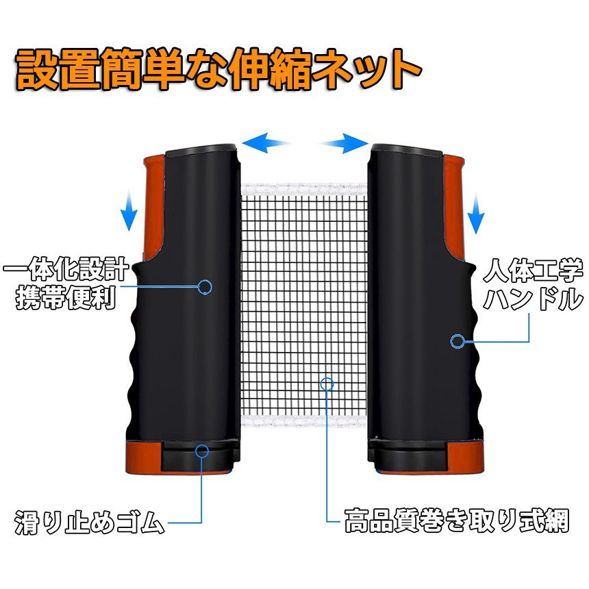 【テーブルさえあれば簡単設置】卓球台は要らない、テーブルだけあれば、簡単にセットして卓球を楽しめるポータブルネットです。グリップ機構の支柱で天板を挟んで固定します。ネットの伸縮サイズは最長約180cm、厚さ約5cmまでのテーブルに設置可能。わざわざ卓球館に行かなくても、家にいても卓球を楽しむことができます。