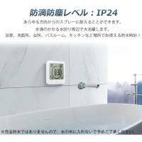 【防水(防滴型)加工】防滴防塵レベル:IP24、あらゆる方向からのスプレーに耐えることができます。水滴のかかる水回り周辺で大活躍します。浴室、洗面所、台所、バスルーム、キッチンなど場所でお使える防水時計です。完全防水ではありませんので、水の中に入れないで予めご了承ください。