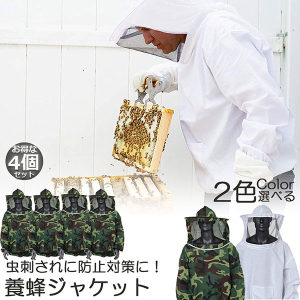 養蜂用 防護服 蜂防護服 4個セット 養蜂ジャケット 帽子 プロ防護服 ハチ防護服 蜂の巣 駆除 蜂巣 害虫駆除 ガーデニング 造園業 作業用