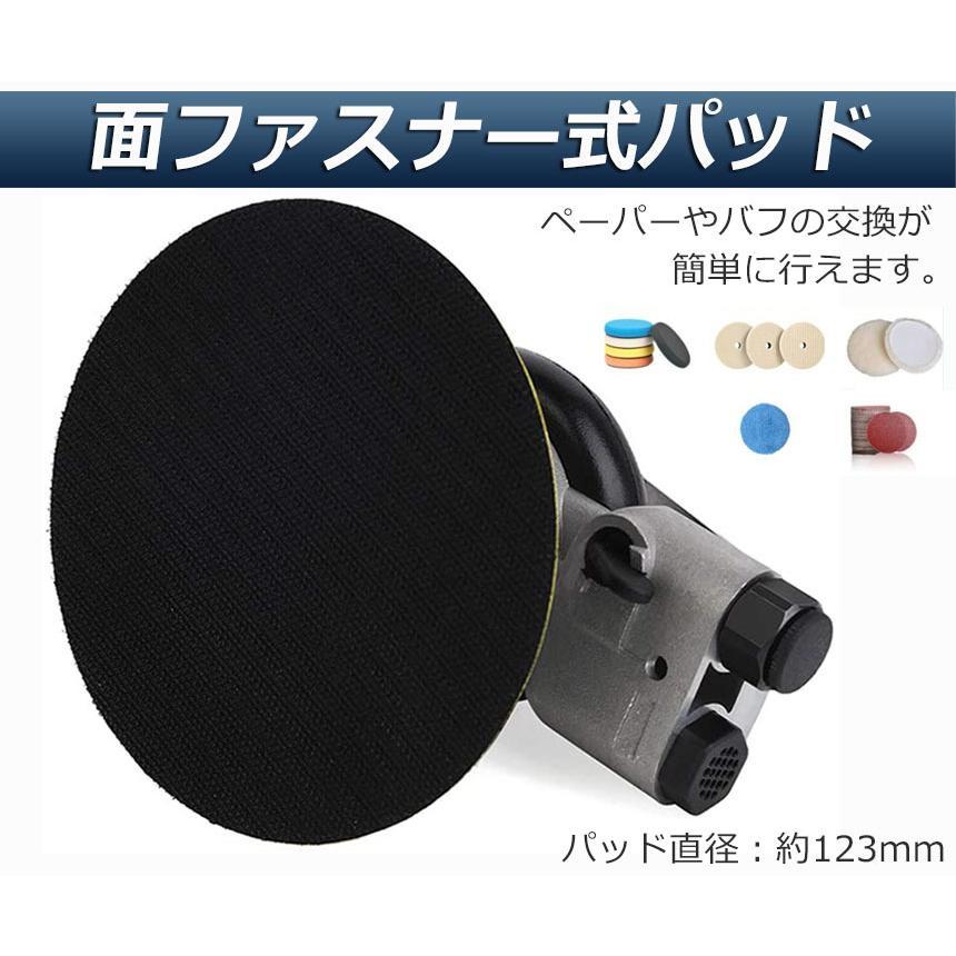 【製品仕様】パッドサイズ:123mm / フリー回転数:10000rp/m エアー消費量:170L/min / 使用空気圧:6.3kg/cm?