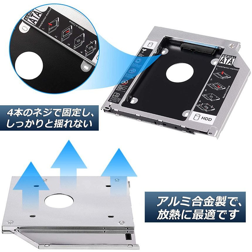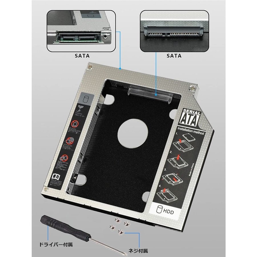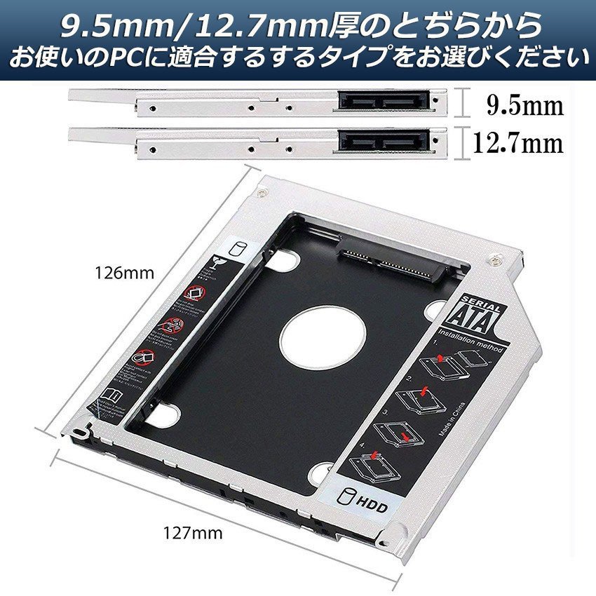 爆買 光学ドライブ HDD SSD 置き換え セカンドHDDアダプター 9.5mm 12.7mm厚 SlimlineSATA ドライブ 搭載 ノートP