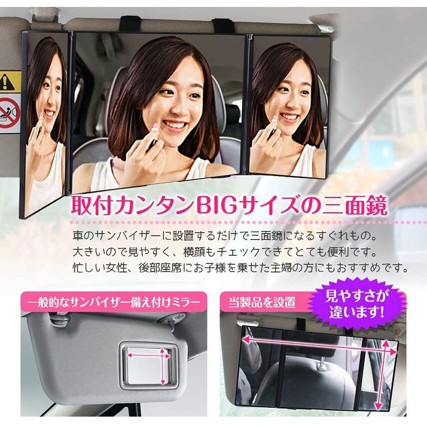 ・車内でメイクをしたり、ヘアスタイルチェックがストレスなくできる大型三面鏡。