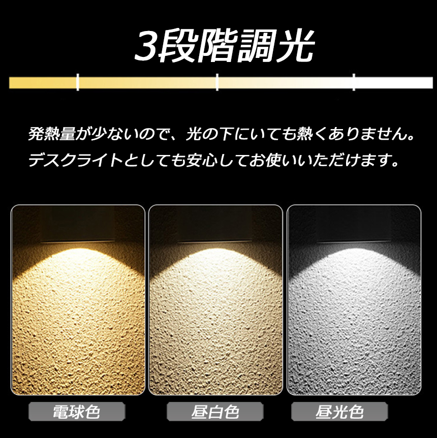 【超高輝度LED × 40CM 】3段階調光: 電球色、昼白色、昼光色、