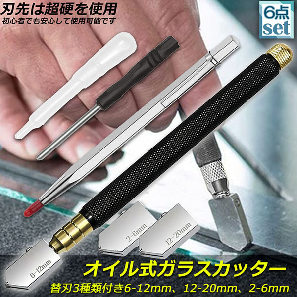 ガラスカッター オイル式 ケガキ針 替刃 6点セット イル補充 ミラータイルカット 硝子カッター スポイト ペンシルケガキ針 スポイド 超硬ガラ