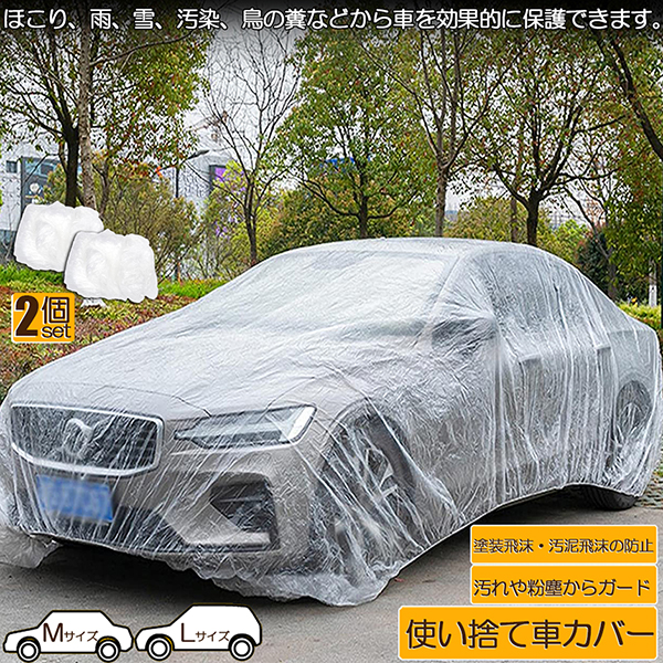 爆買 カーカバー 自動車カバー 使い捨てカーカバー 2枚セット 自転車カバー 選べる2サイズ 使い捨てタイプ ゴムバンド付き 丈夫な厚手生地 撥水 U