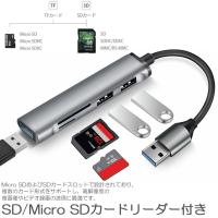 【5in1ハブ】USB3.0&Type CからUSB3.0x1、USB2.0x2、SDカードリーダーx1、microSDカードリーダーx1のマルチポート外付けハブです。
