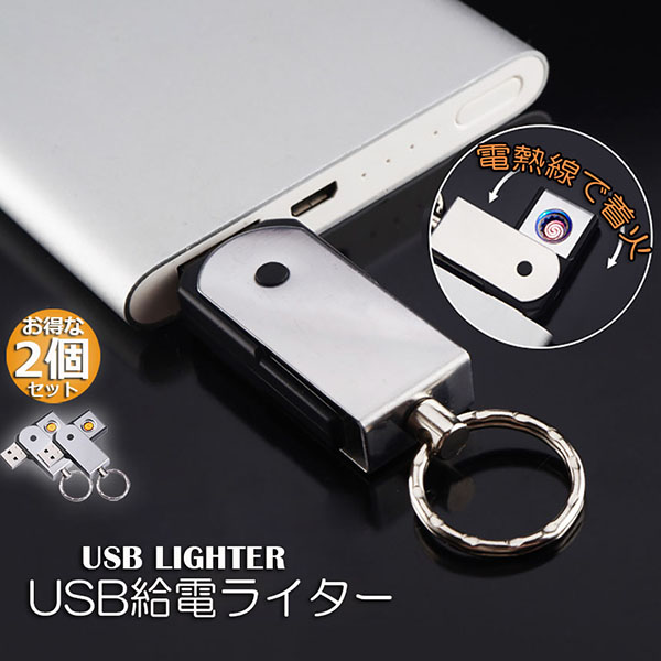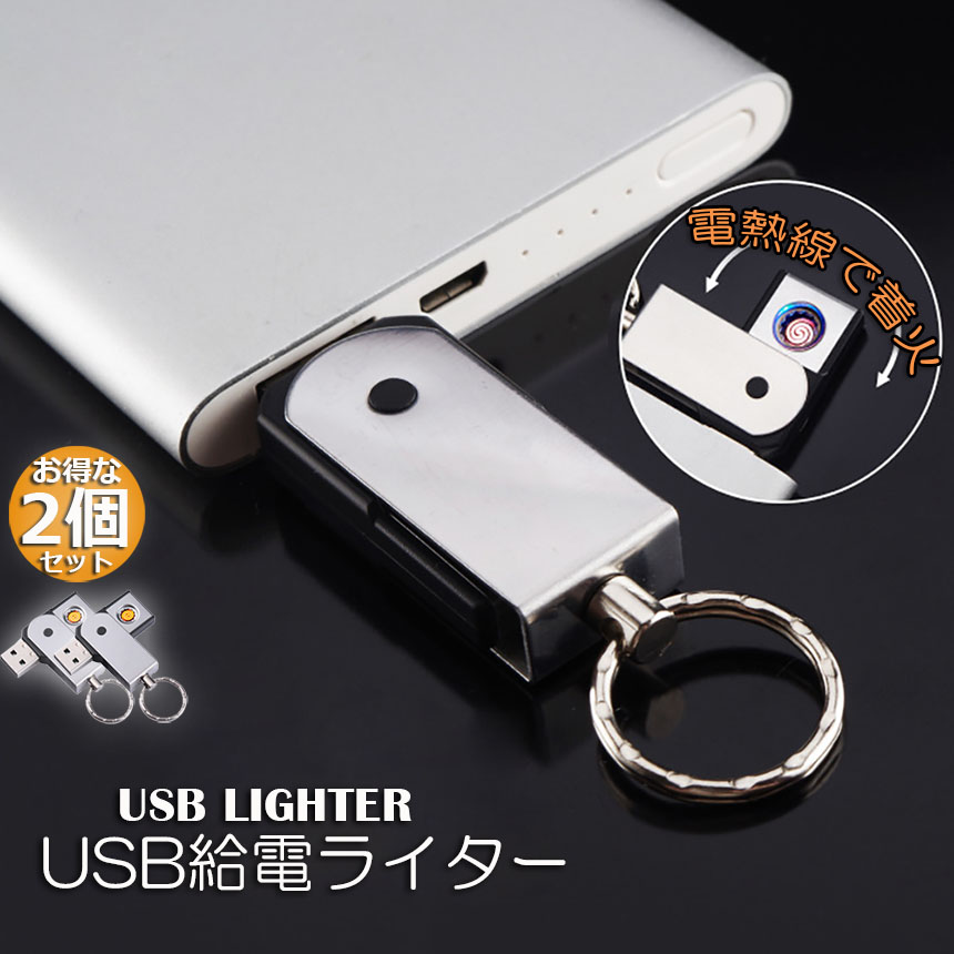 爆買 USBライター 電子ライター 給電式ライター 2個セット 小型 ガスオイル不要 繰り返し使用 軽量持ち運び便利 防風 軽量 薄型 点
