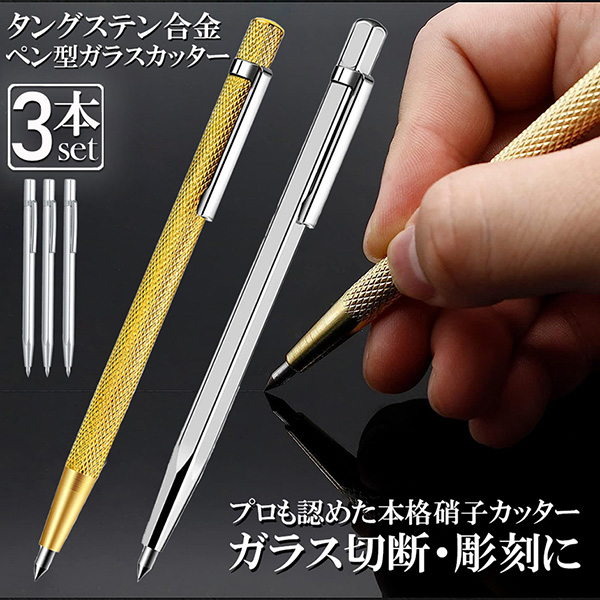 ガラスカッター 3本セット プロ用 ガラス切り ガラス切り工具 ガラス 硝子 ガラス切断 斬るペン セラミックカッター エッチングペン タイルカッター