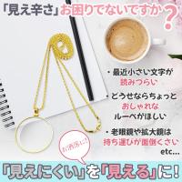 【気軽におしゃれなペンダントルーペ】長めのチェーンが付いたシルバーとゴールドのカラーを選べる倍率5倍のルーペです。ネックレスのように首からぶら下げられ、使いたいとき直ぐに胸元からさっと使えます。【しっかり拡大鏡として使えます】新聞や読書、説明書類などが見えにくくて困っているときも、首から下げておけば必要な時にサッと拡大でき、ポケットやカバンでどこに行ったか探さなくてもいいのでとても便利です。