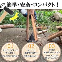クサビに薪を押し当て、上からハンマーで叩くだけで簡単に薪を割ることができます!