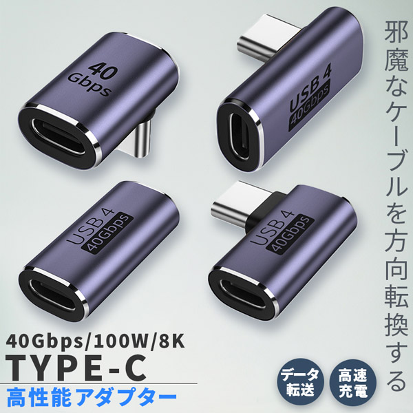 爆買 USB4.0 Type C アダプター 4種類 ストレート L字 L型 延長 接続 オス メス USB-C PD 100W/5A 急速充電 40