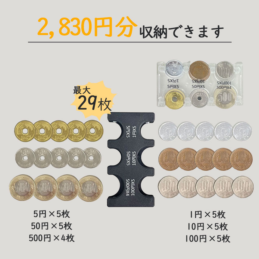 これ1つで簡単整理小銭をスマートに持ち運び お会計の時、小銭の支払いに手間取ったことありませんか? ついつい持ち運ぶのが面倒で小銭を使えず溜まってませんか?ポケットのじゃらじゃら、お会計も楽々簡単解決 キュッとはめるだけ、ケース付きでコインをスマートに管理