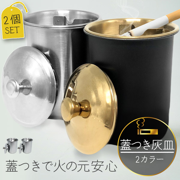 爆買 灰皿 蓋つき 2カラー 2個セット ブラック シルバー アンティーク マット 質感 耐久性 金属 アッシュトレイ おしゃれ かっこいい 男女兼用