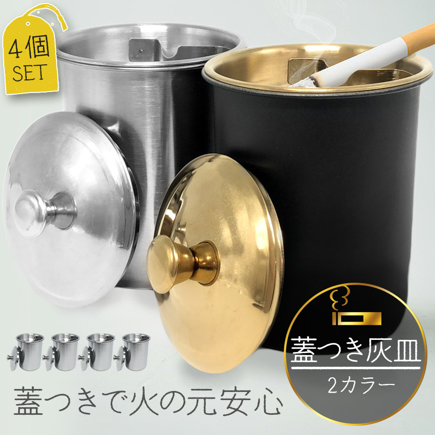 爆買 灰皿 蓋つき 2カラー 4個セット ブラック シルバー アンティーク マット 質感 耐久性 金属 アッシュトレイ おしゃれ かっこいい 男女兼用