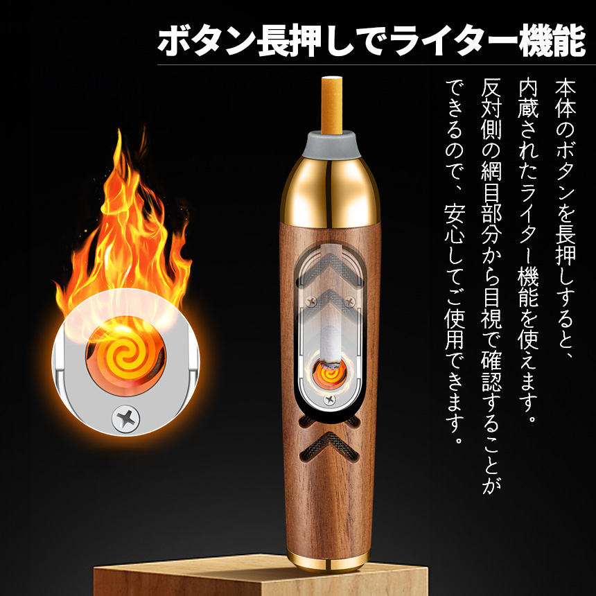 【灰が落ちない携帯灰皿】紙巻きたばこは灰が落ちたり、散らかったりと何かと灰問題は尽きませんが、このタバコにはめて使用するタイプの携帯灰皿は灰を落とすことなく煙草を吸えます。風の中やゲーム中、車でも灰を気にすることなくタバコが吸えます!そして、煙草をさしてボタンを長押しすれば火をつけられるライター機能付き!
