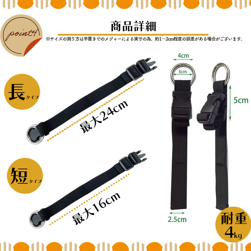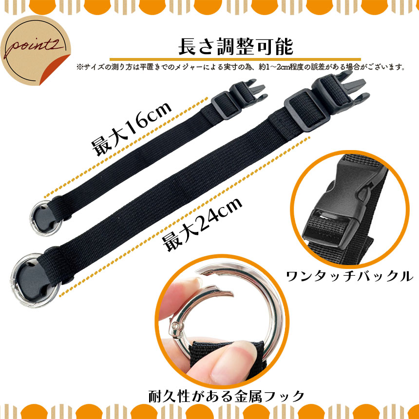 【調整可能】2サイズがあります(16cmと24cm)詳しいサイズは画像ご参考ください、ニーズに合わせて調整できます。リングもストラップも、端を固定したり、物を縛る端として活用でき、とても便利です。