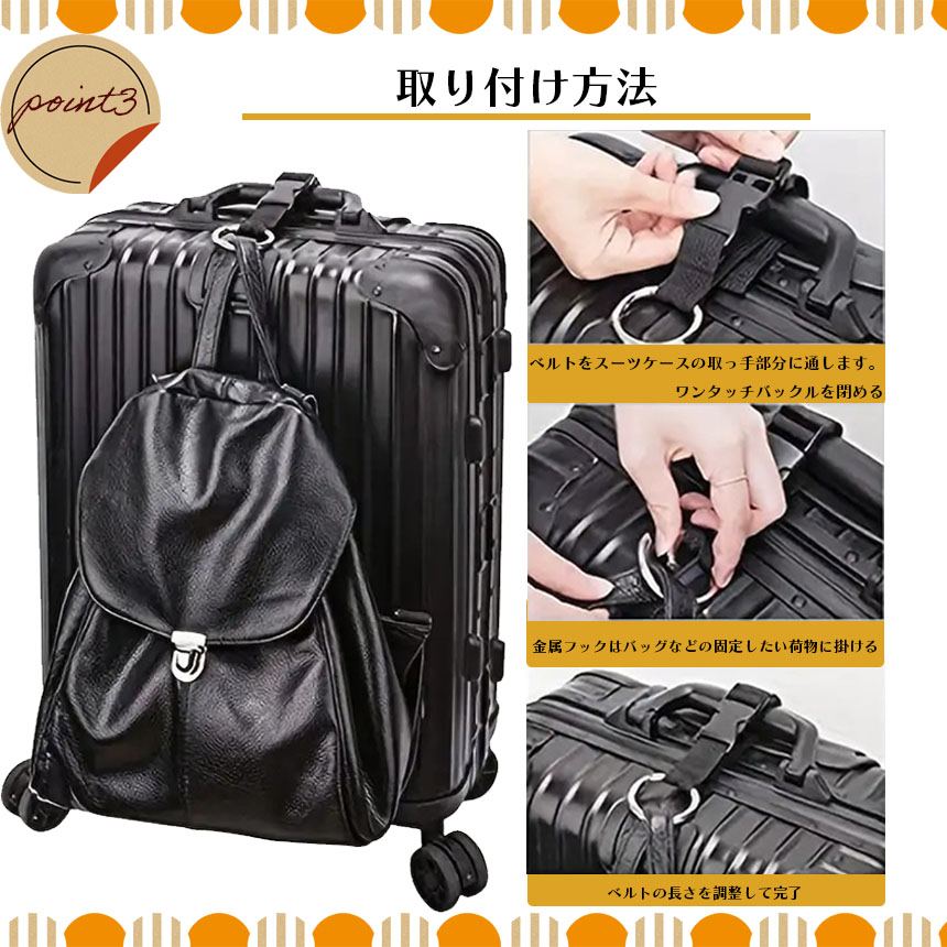 【紛失防止】スーツケース連結ベルトはリュックサックやハンドバッグ、ショッピングバッグなどを縛ることができ、旅先で手を解放したり、荷物を紛失したりすることもなく、とても便利です。コンパクトで持ち運びも簡単なので、旅には欠かせません。