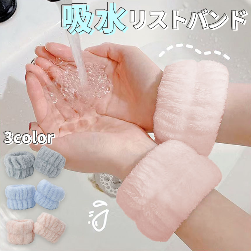 爆買 吸水リストバンド 3色選べる 洗顔 洗い物 手洗い 家事 手首バンド ウォッシュバンド ふわふわ もこもこ 袖濡れ防止 アームバンド マイクロフ