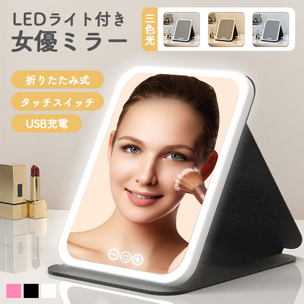 【憧れの女優ミラー】大きめの鏡に電球が埋め込まれた上品なデザインの女優ミラーです。華やかな見た目で毎日のお化粧や準備も楽しくなります♪誰もが一度は憧れるミラーなので、プレゼントとしても大変喜ばれます!【高品質】銀メッキ製の高反射率ミラーで顔をクリアに映し出します。アイメイクなども細部までチェックしながらメイクができます。【3色調光・明るさ調節】ミラー下部のボタンをタッチで操作することで光の色や明るさの切り替えができます。使用するお部屋の環境や用途に合わせて調整して、より自然な色味を確認できます。