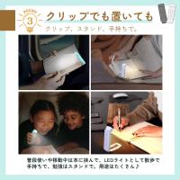 本にクリップで挟んで使えるので、移動してライトが遠くなることもないし、ベッドでも、寝転がってもどこでも使えちゃいます。首の稼働半ん見もちろんスタンドとして置いても、ちょっと照らしたいときの手持ちのライトとしても用途多彩で自由に使えます♪