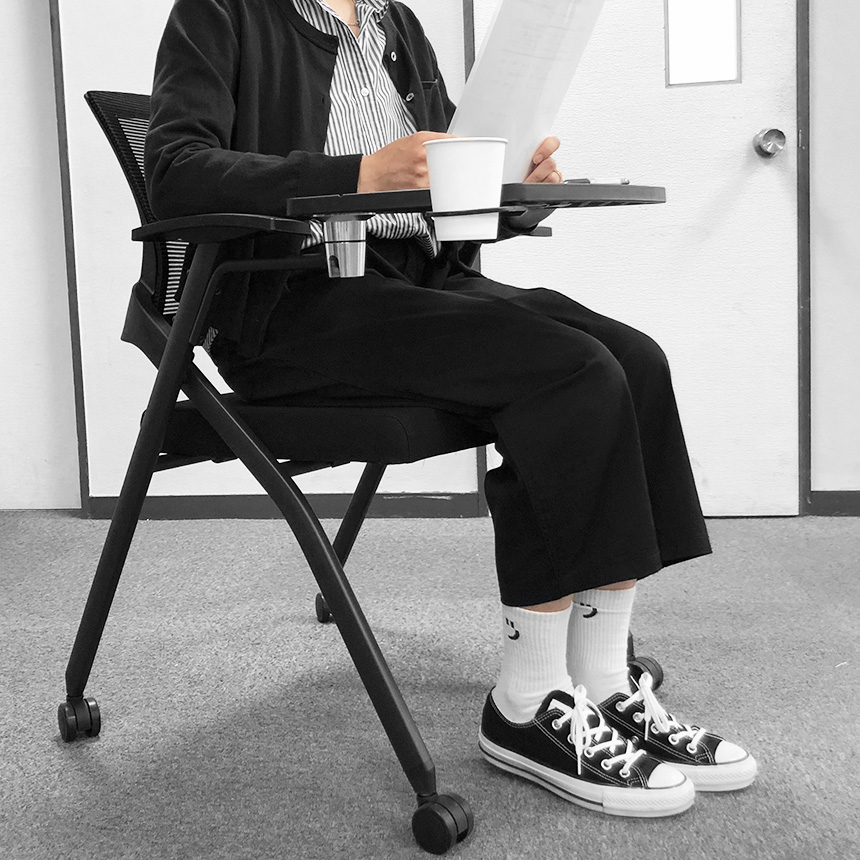 【便利なテーブル】テーブルは、ドリンクホルダー、ペン置き付き。会議や公演、ミーティングなどで役立ちます。ネジで簡単に取り付けできます。付属の小さなL字六角を使って、テーブルの左右の角度もある程度調節できます。