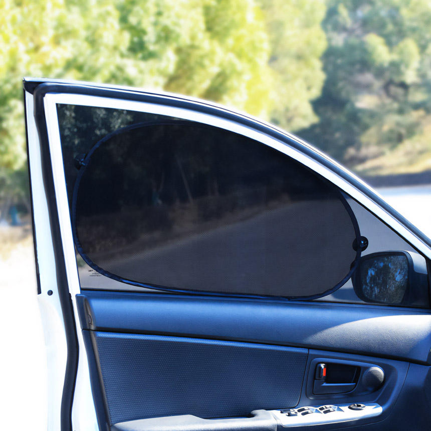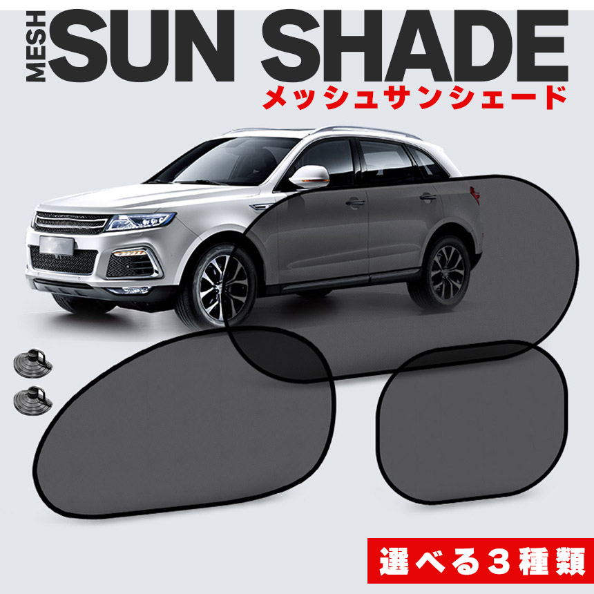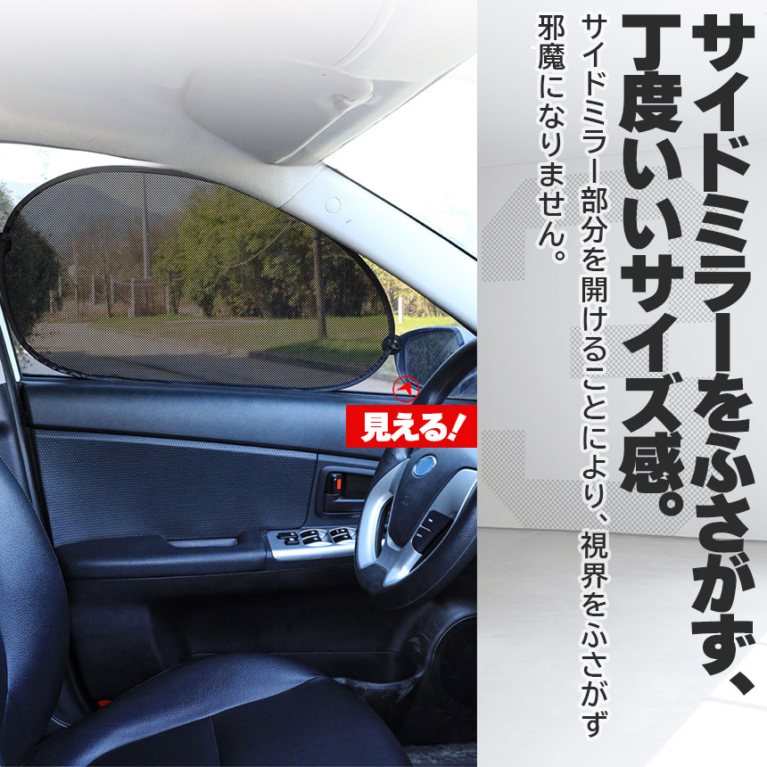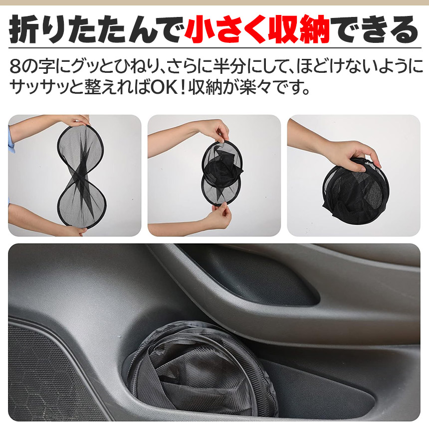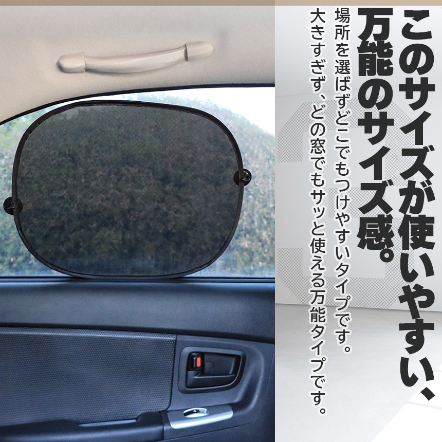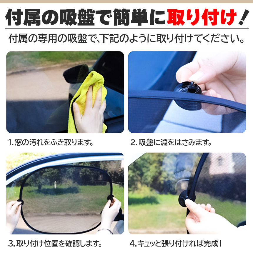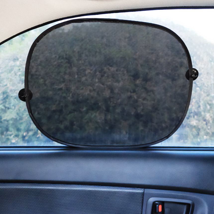 【メッシュの日除けカーテン♪】小さくたためて邪魔にならず、吸盤で好きなところに取り付けできるメッシュタイプのサンシェードです。直射日光は暑いし眩しい...そんな太陽光を簡単にガード!【装着簡単】カーウィンドウに吸盤を取り付けた製品を張るだけ♪(吸盤が変形している場合は、ぬるま湯につけていただくと元通りになり、張り付けやすくなります。)