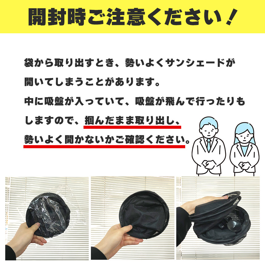 ※サイドウィンドウ、フロントウィンドウにサンシェードをつけたままの走行は、法律により禁止されています。走行時以外にご使用くださいませ。