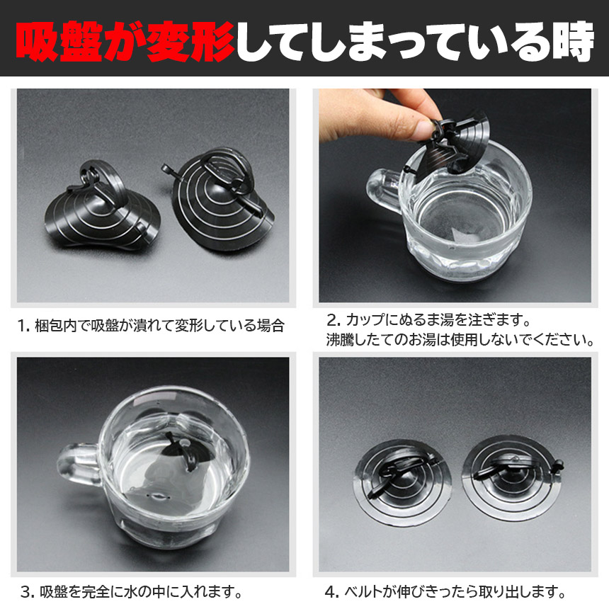 カーウィンドウに吸盤を取り付けた製品を張るだけ♪(吸盤が変形している場合は、ぬるま湯につけていただくと元通りになり、張り付けやすくなります。)