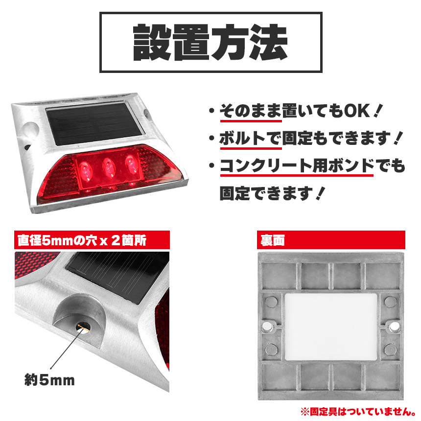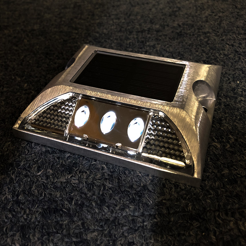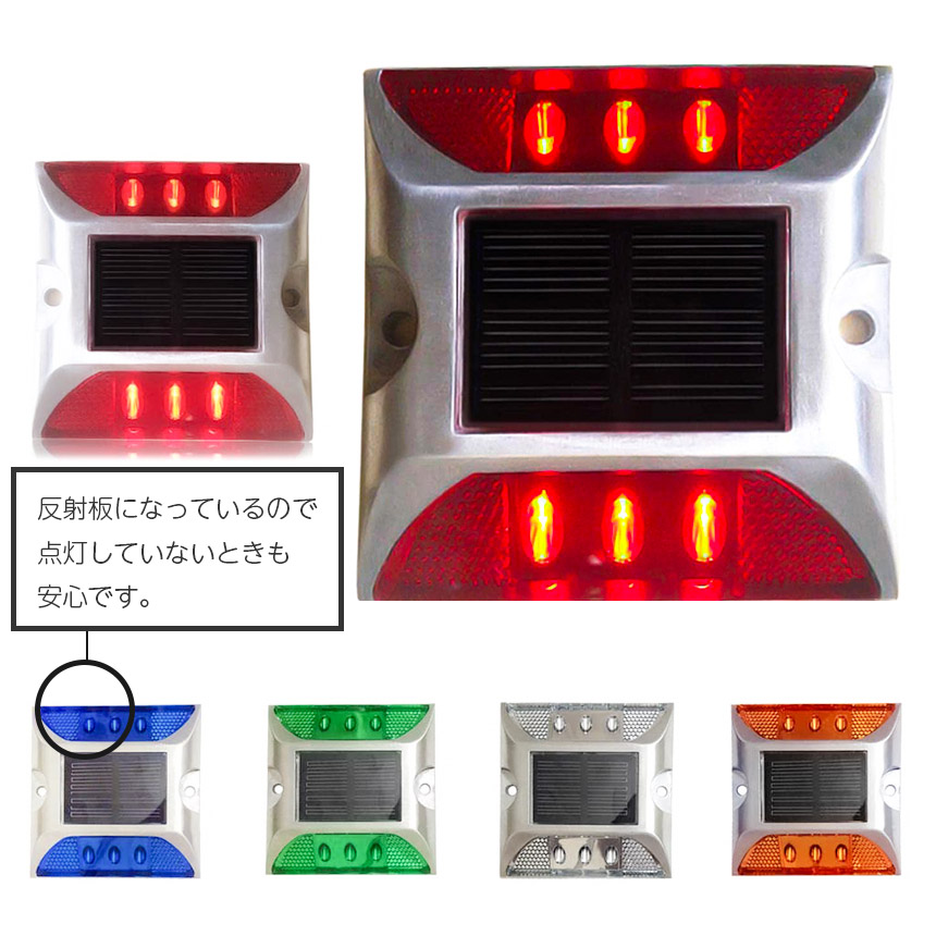 ライトが付ていないときも一般的な道路鋲のように、反射板として機能しますので、より安全に使用できます。
