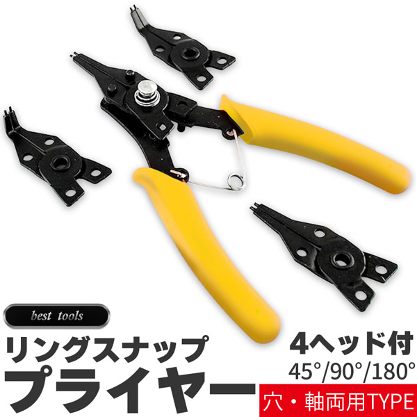 ◎軸・穴両用スナップリングプライヤー◎【素材】高品質の高炭素鋼からの精密に鍛造、特殊な高周波熱処理で硬化されていて、強力で耐摩耗性があり、高硬度です。【1セット内容】本体×1、交換用ヘッド×4【サイズ】約110x140mm(ヘッドを取り付けた全体。)※多少誤差があります。