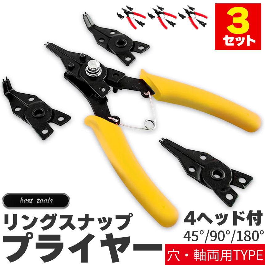 ◎軸・穴両用スナップリングプライヤー◎【素材】高品質の高炭素鋼からの精密に鍛造、特殊な高周波熱処理で硬化されていて、強力で耐摩耗性があり、高硬度です。【1セット内容】本体×1、交換用ヘッド×4【サイズ】約110x140mm(ヘッドを取り付けた全体。)※多少誤差があります。