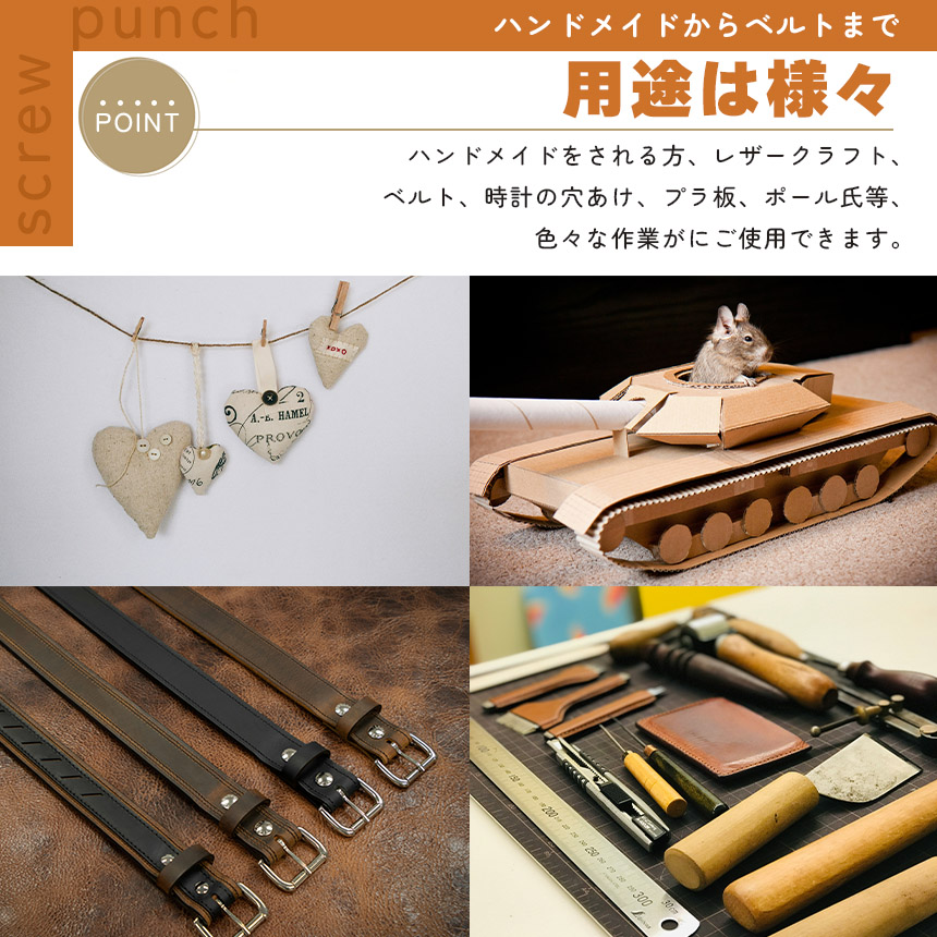 革パン革製品、布製品、紙、ベルト、レザークラフト、時計ストラップ、ダンボール、ゴム、ビニール、プラスチック、裁縫、靴、バッグ、鞄、キャンバス、洋服、ギフトカード、ゴム板、段ボールカード、硬質PVCや裁縫に大活躍です。家庭でも工場でも事務室でも適用です。(ものによっては開けにくいものもございますので、ご了承ください。)