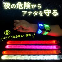 明るく発光するバンドで離れたところからでも視認性が良く、夜の事故を防止します。