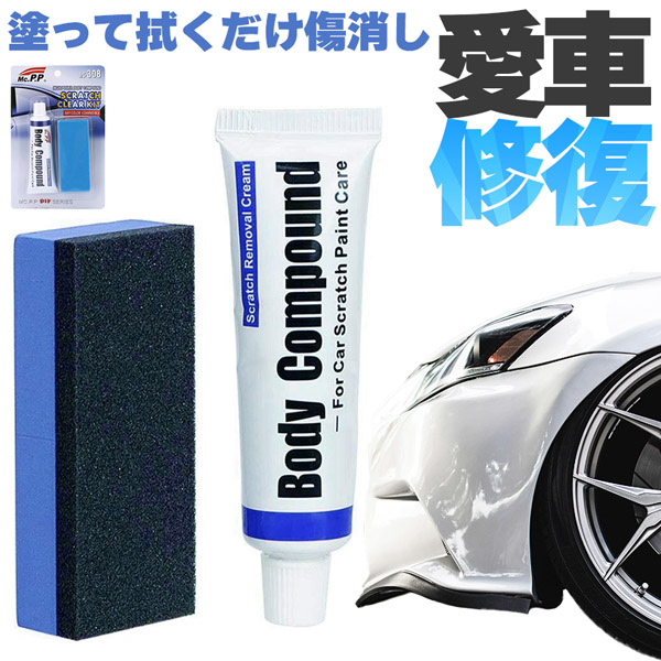 直したい部分をきれいにして乾燥させ、付属のスポンジにクリームを出して目立たなくなるまで磨き、あとは柔らかいタオルなどで拭きあげるだけ!本当に簡単に誰でもできちゃいます♪