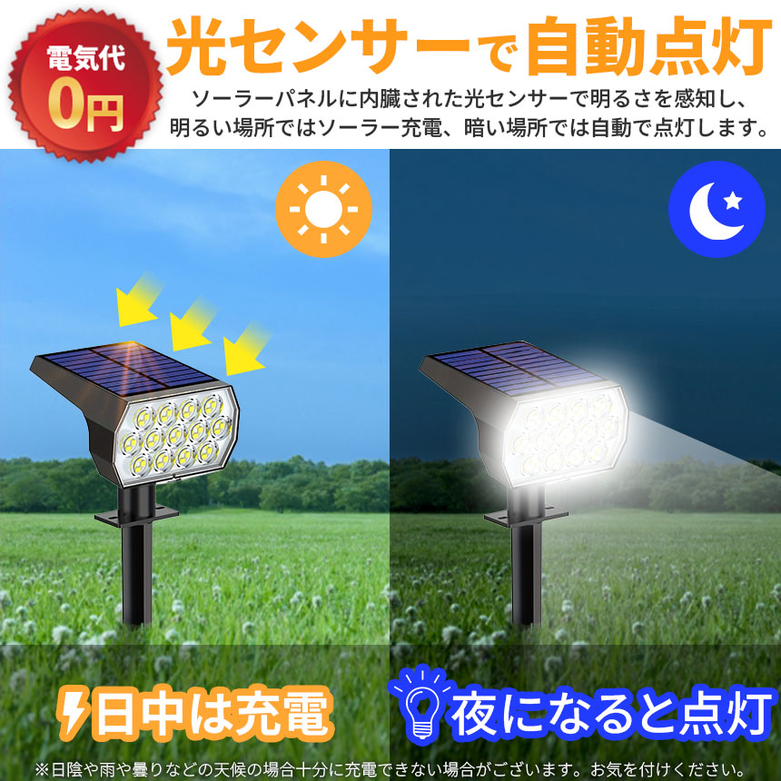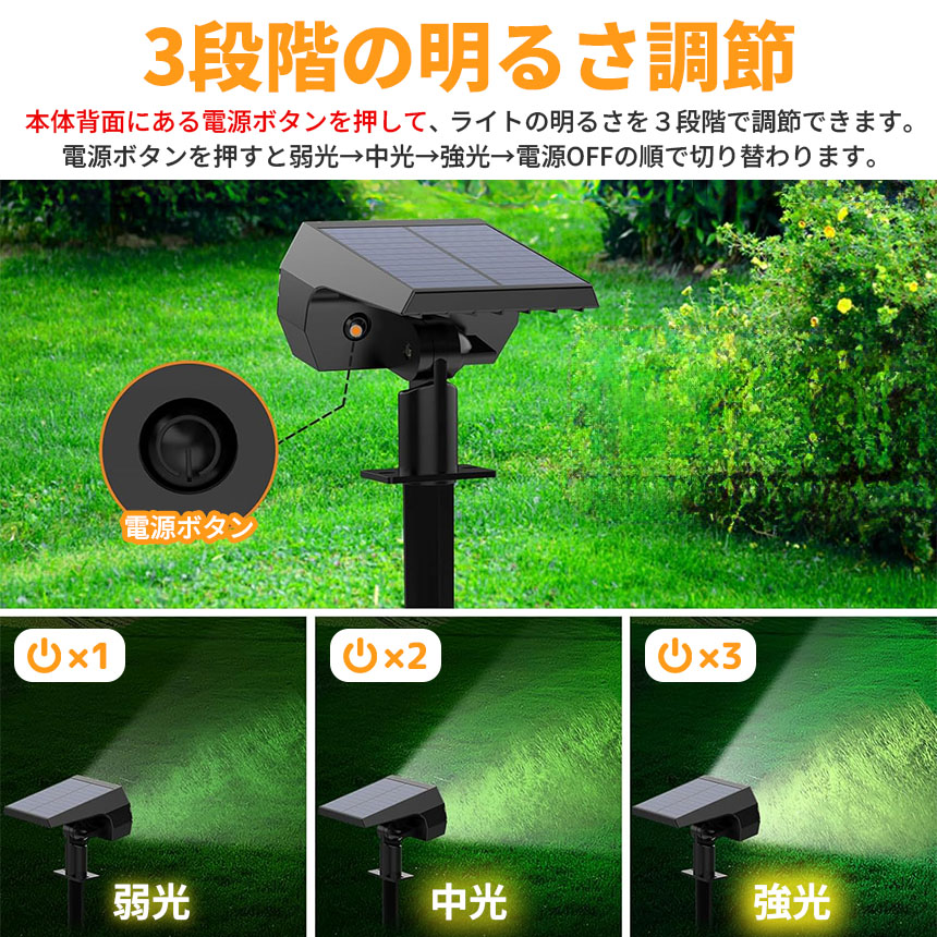 ソーラーパネルに明るさを感知するセンサーが内臓されているので、明るい場所ではソーラー充電し、暗いところでは自動で点灯します。