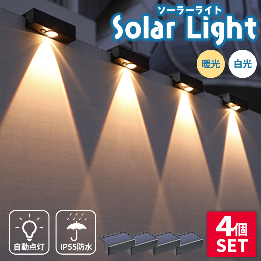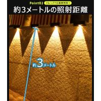 ●塀や壁に取り付けるソーラーライト●L字型で塀や壁に取り付け、真下を照らしてくれるソーラーライトです。凸レンズによって円錐状に綺麗に点灯し、おしゃれでムードのあるライトアップが行えます。【暗くなると自動点灯】光センサー機能が搭載しているので、明るさを感知して点灯/消灯します。明るい場所ではソーラーで充電し、暗い場所では自動で点灯します。電源をONにして設置しておけばその後めんどうな操作は不要で、電気代もかかりません。