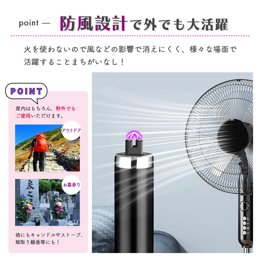 火を使わないので風などの影響で消えにくく、様々な場面で活躍することまちがいなし!