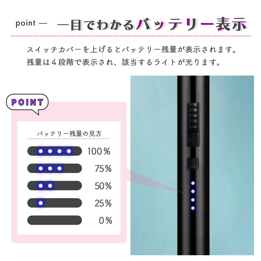 1.スライドするとバッテリー残量が光ります。