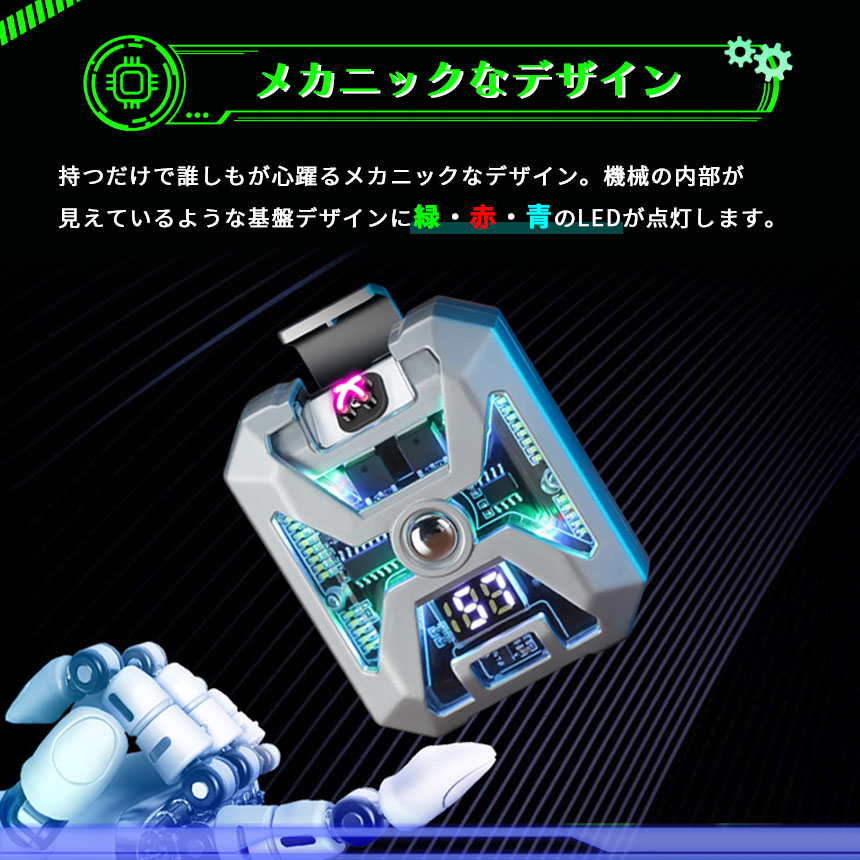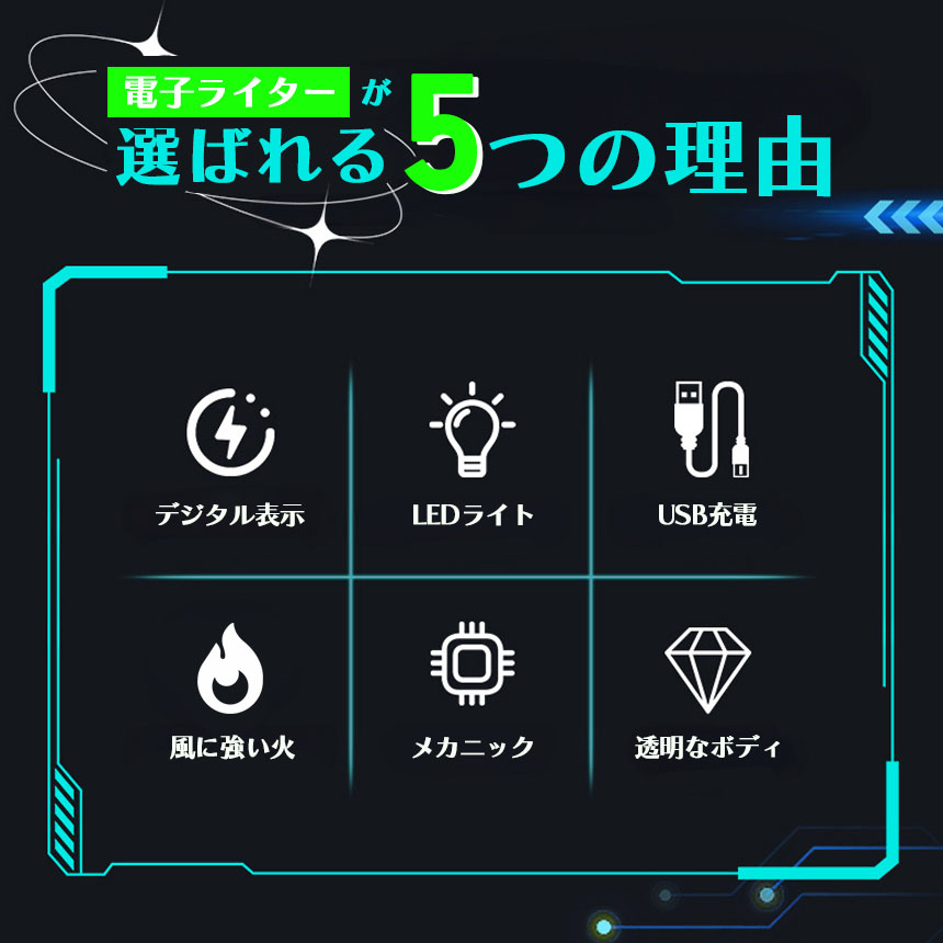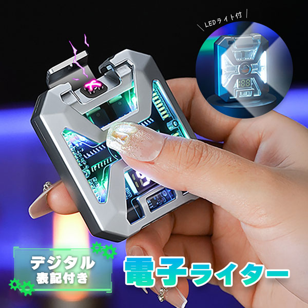 ●デジタル表示&ライト付き 電子ライター●【炎が出ないから風に強い】ボタンを押すだけでプラズマ放電で着火する便利なライターです。火を使わないので風などの影響で火が消えづらく快適に使用できます。点火時間は最大8秒間で、タバコやお香、キャンドルなどにもご使用いただけます。※蓋を開けてバッテリー残量表示中にボタンを押すとプラズマ放電が出ます。※バッテリー表示が消えた後にボタンを押すとライトが光ります。ご注意ください。