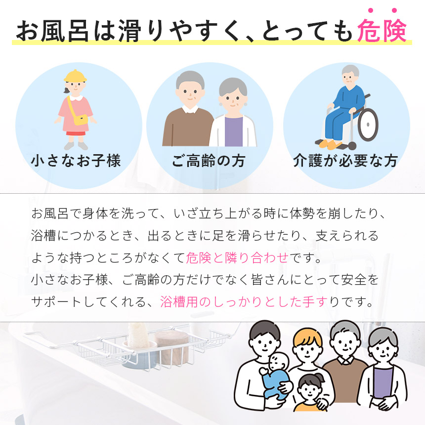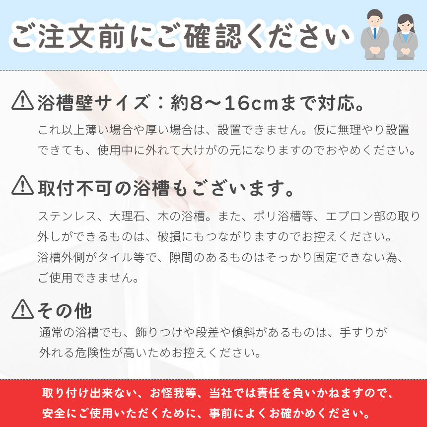 ・通常の浴槽でも、飾りつけや段差や傾斜があるものは、手すりが外れる危険性が高いためお控えください。