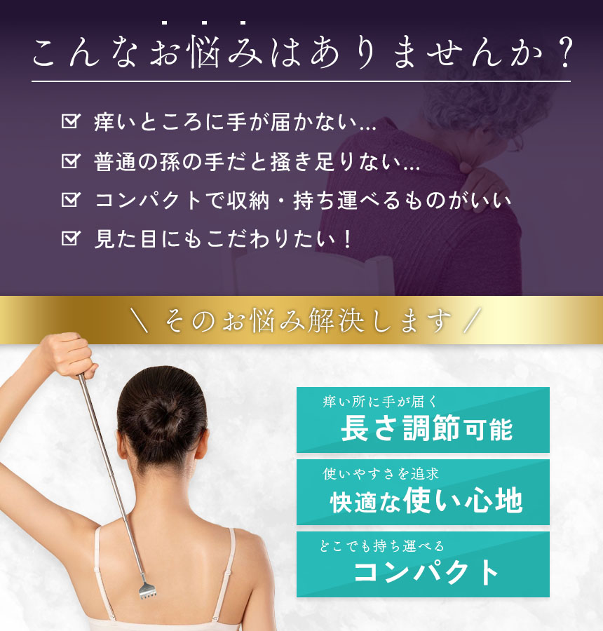 ●掻き心地抜群! ペン型 伸縮式孫の手●こんなお悩みはありませんか?・痒いところに手が届かない…・普通の孫の手だと掻き足りない…・コンパクトで収納・持ち運べるものがいい・見た目にもこだわりたい!