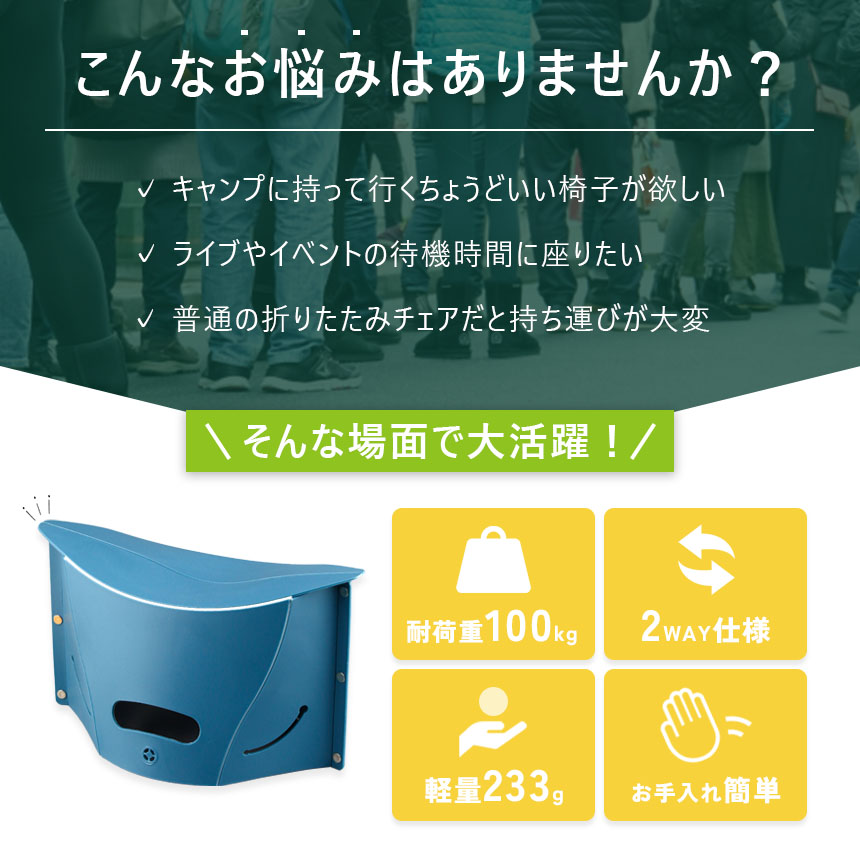 折りたたみ椅子 バッグ 折りたためる チェア 2色選べる アウトドア コンパクト ポータブル 折り畳み 持ち運び いす スツール イベント ライブ 軽量 イス 折りたたみいす 折りたたみイス ブルー グリーン 小