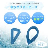 水に浸けると膨らむ!冷却タオル!タオルの中に吸水ポリマービーズが入っているので水を吸収してぐんぐん膨らむ!一般的な冷感タオルやクールリングなどに比べて冷却効果が圧倒的に長持ちな冷却タオルです。こんな場面におすすめ!・通勤・通学・スポーツ・スポーツ観戦・キャンプなどのアウトドア・屋外での作業