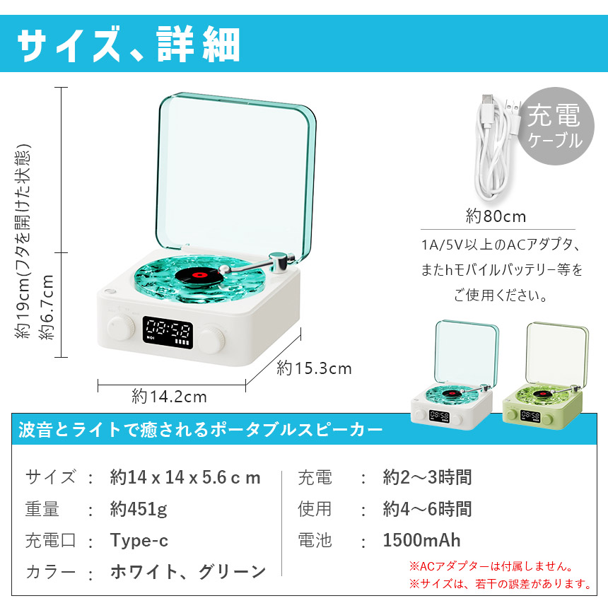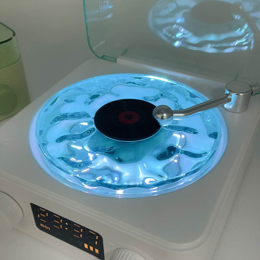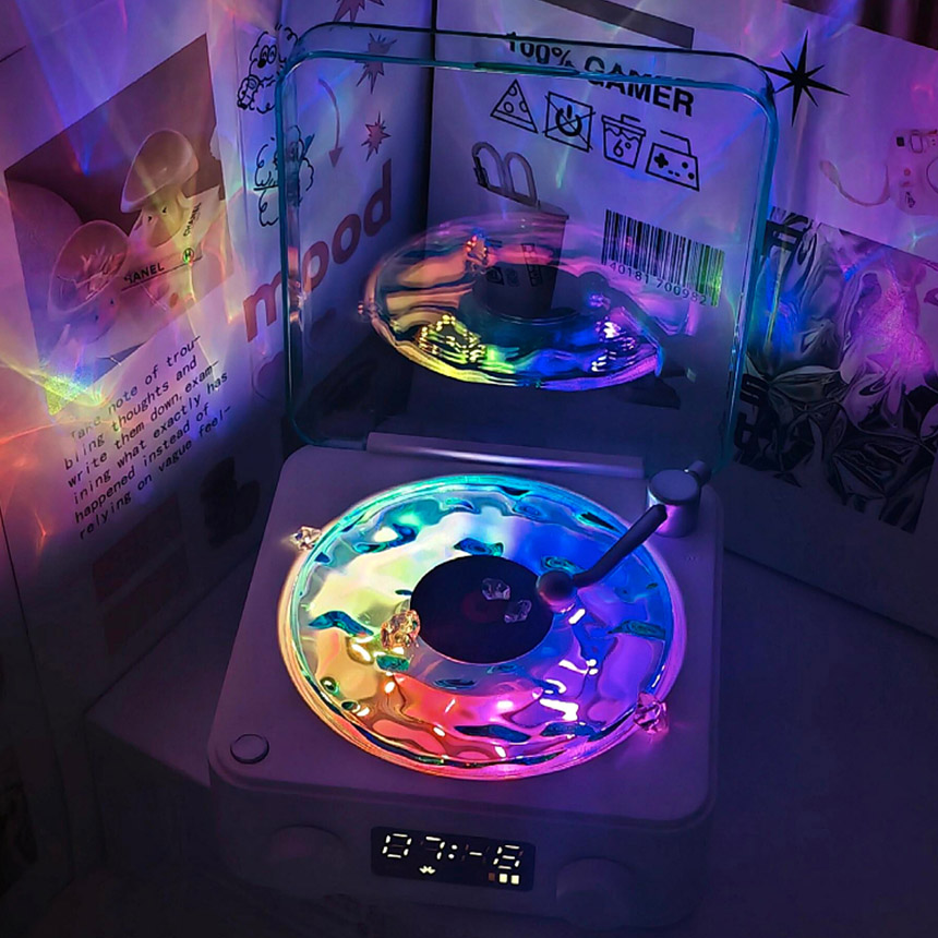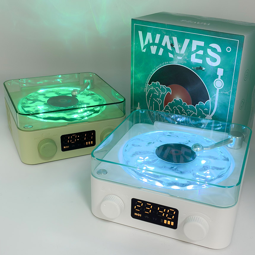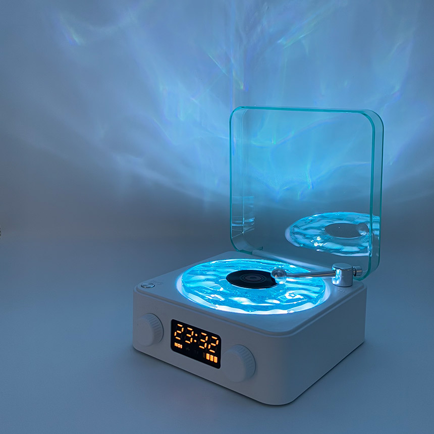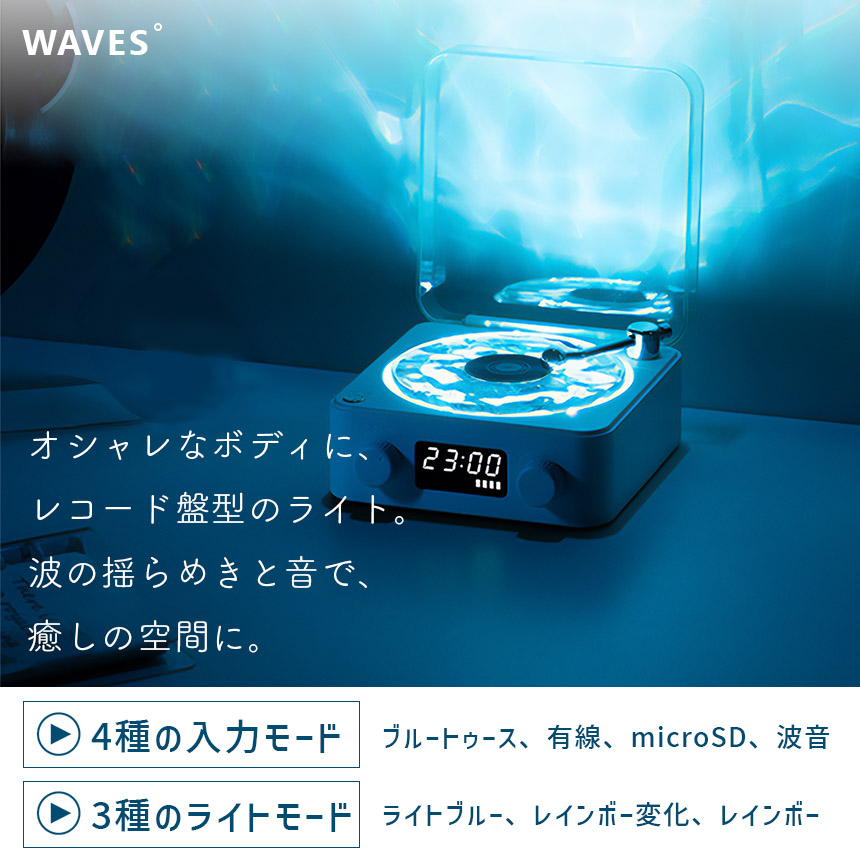 「波の音とゆらゆら波のライトでリラックス♪」レコード風スピーカー~波音入り~●おいておくだけでお洒落♪●回るライトで癒し空間に●スマホからすぐ聞けるBluetooth対応●ライトOFFでも使えます♪