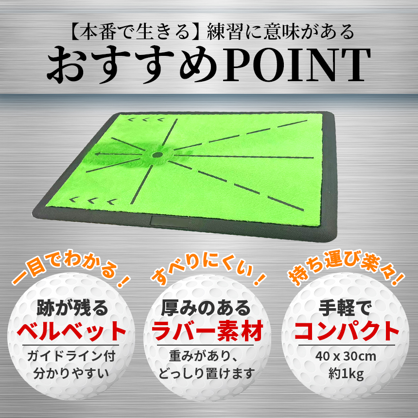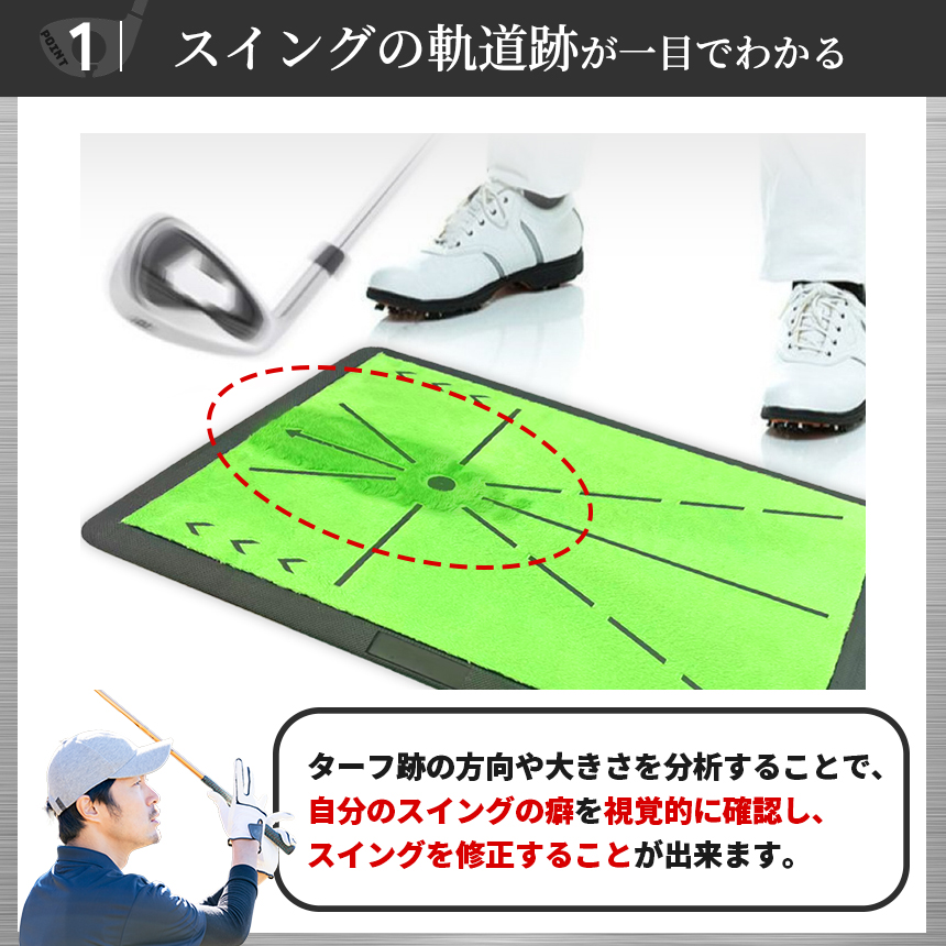 クラブを振るだけで“スイング軌道”が一目で分かる、プロ仕様のゴルフ練習マットです。