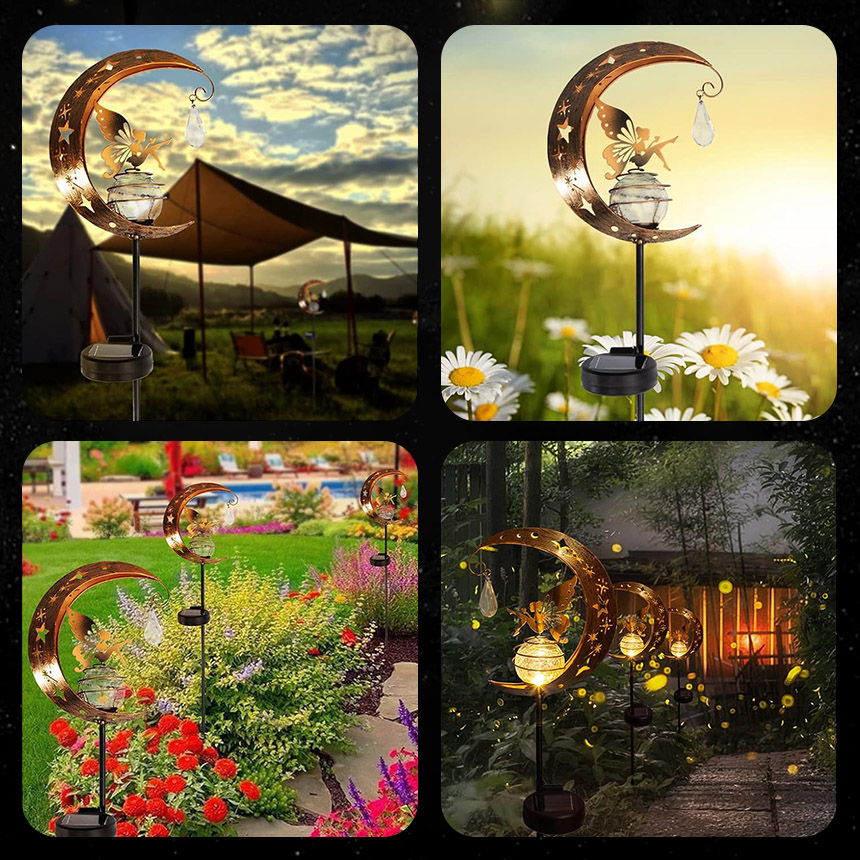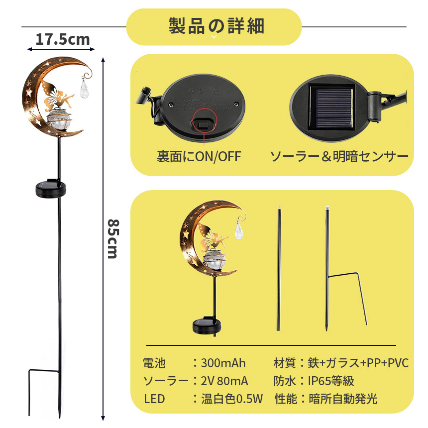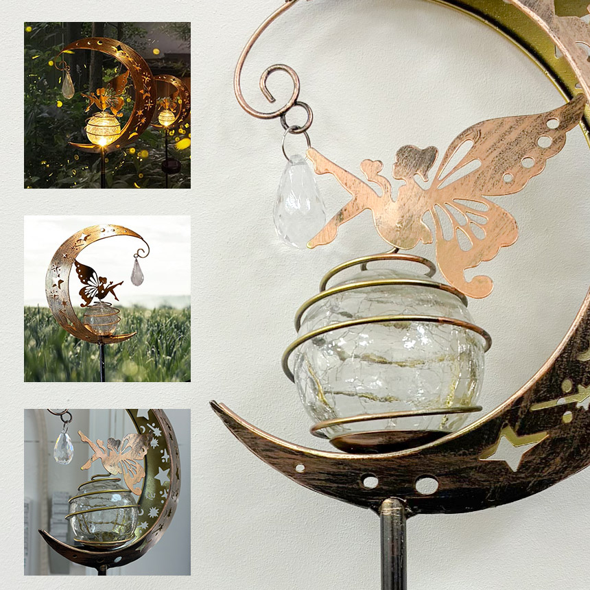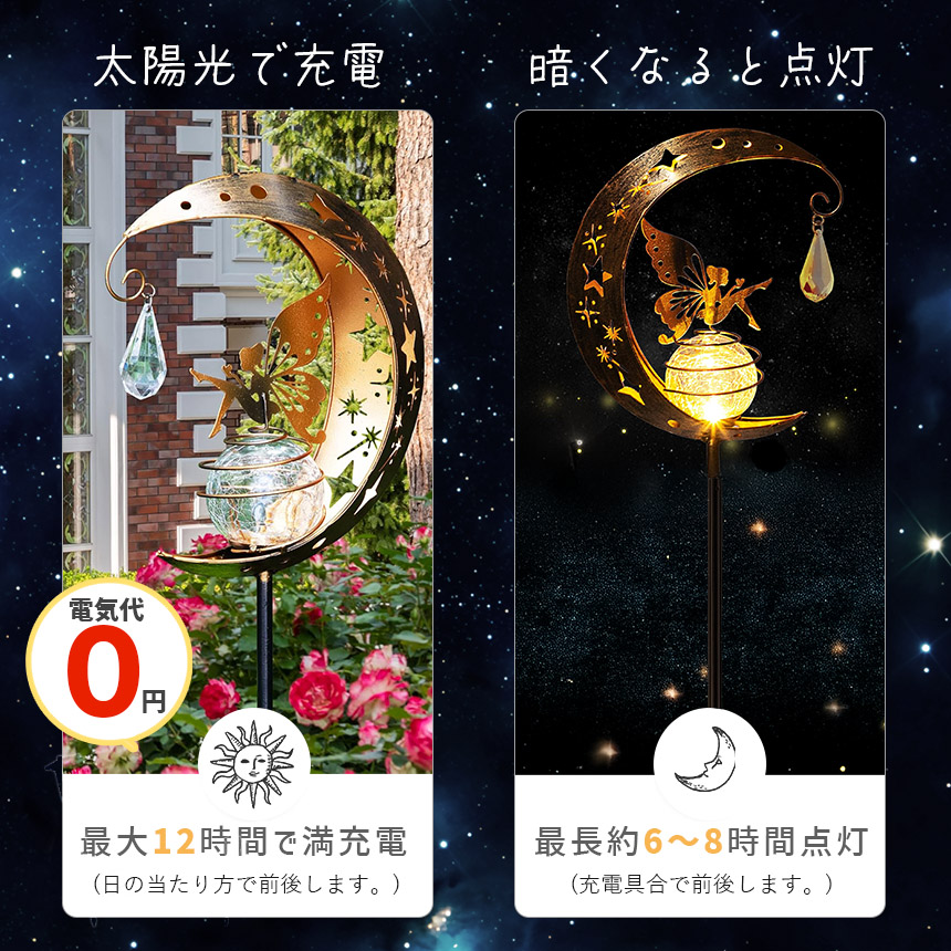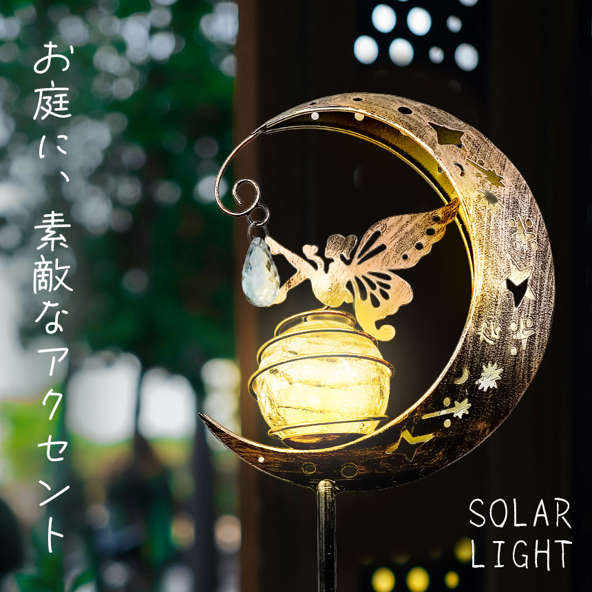 ソーラーライト ガーデンライト LED 防水 おしゃれ 庭 玄関 ベランダ 自動点灯 屋外 三日月 蝶 モチーフ アンティーク 花壇 自動点灯 アンティーク調 ガーデンオーナメント ハロウィン 飾りライト ソーラー置き物 ガーデニング雑貨 センサーライト ギフト プレゼント